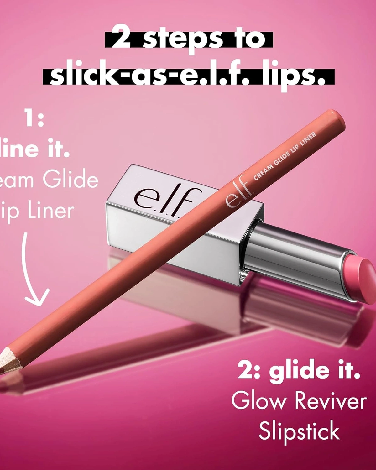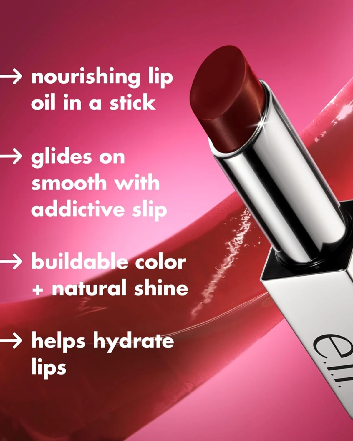 TINTED LIP OIL STICK: The slick of your favorite lip oil meets the high-pigment payoff of your go-to lipstick! e.l.f. Glow Reviver Slipstick glides on smooth with irresistible softness and shine.