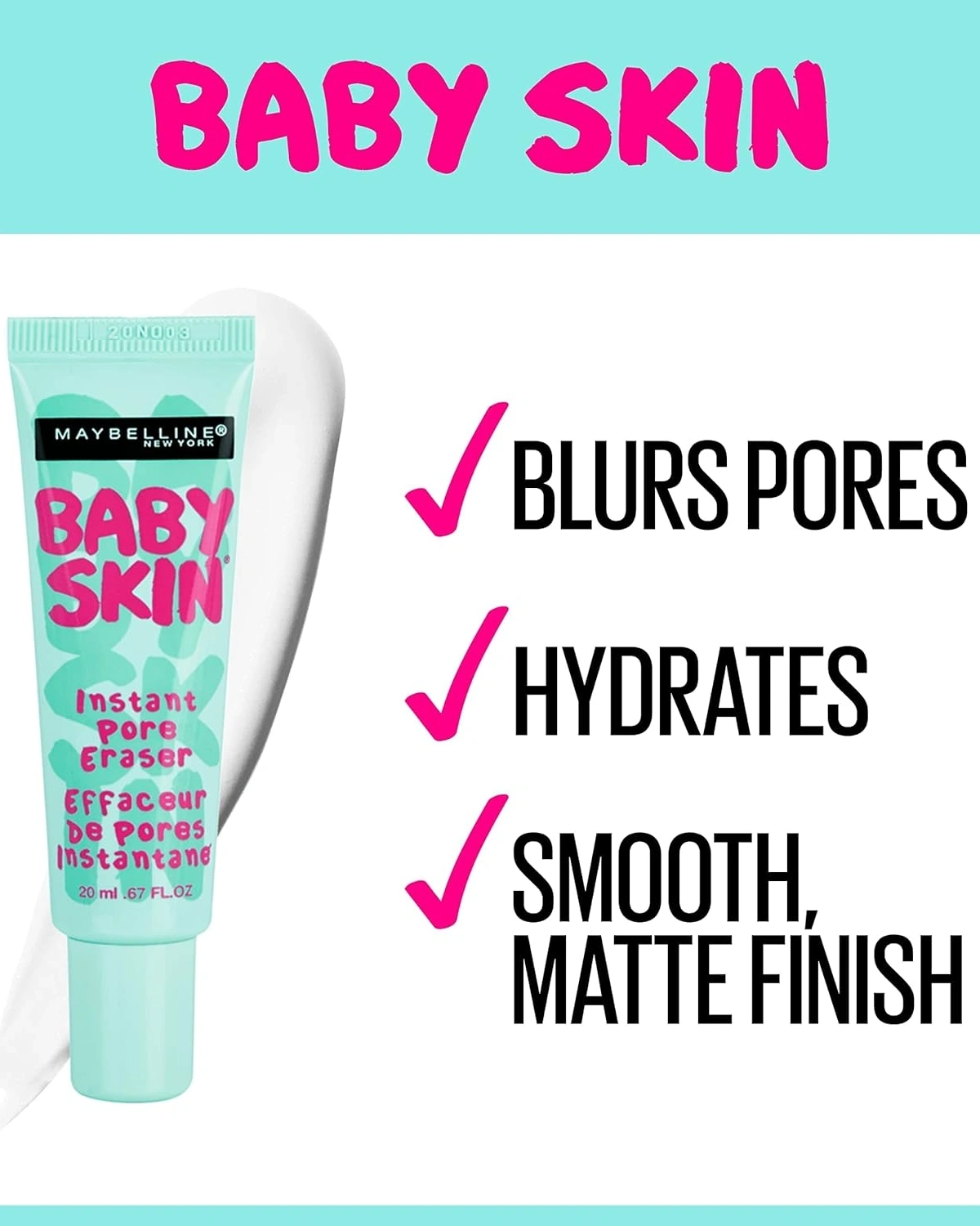 Pore Minimizer Face Primer: A pore blurring makeup primer, Baby Skin goes on like a moisturizer to help create a smooth canvas over which to apply foundation, and leaves the skin looking matte and poreless
