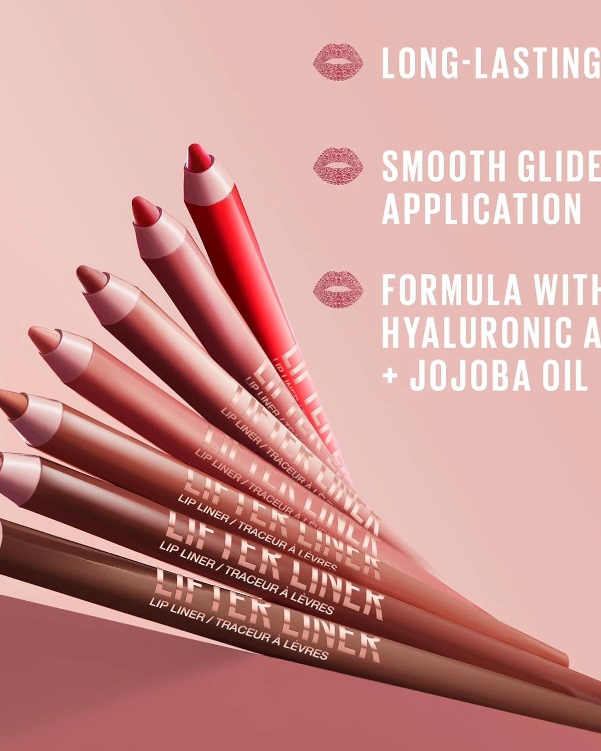 Mix & Match With Lifter Gloss: These lip liners are available in 10 shades including nudes from light beige to rich chocolate brown and more. For a lifted lip makeup look, sculpt and line with Lifter Liner, then hydrate and shine with Lifter Lip Gloss
