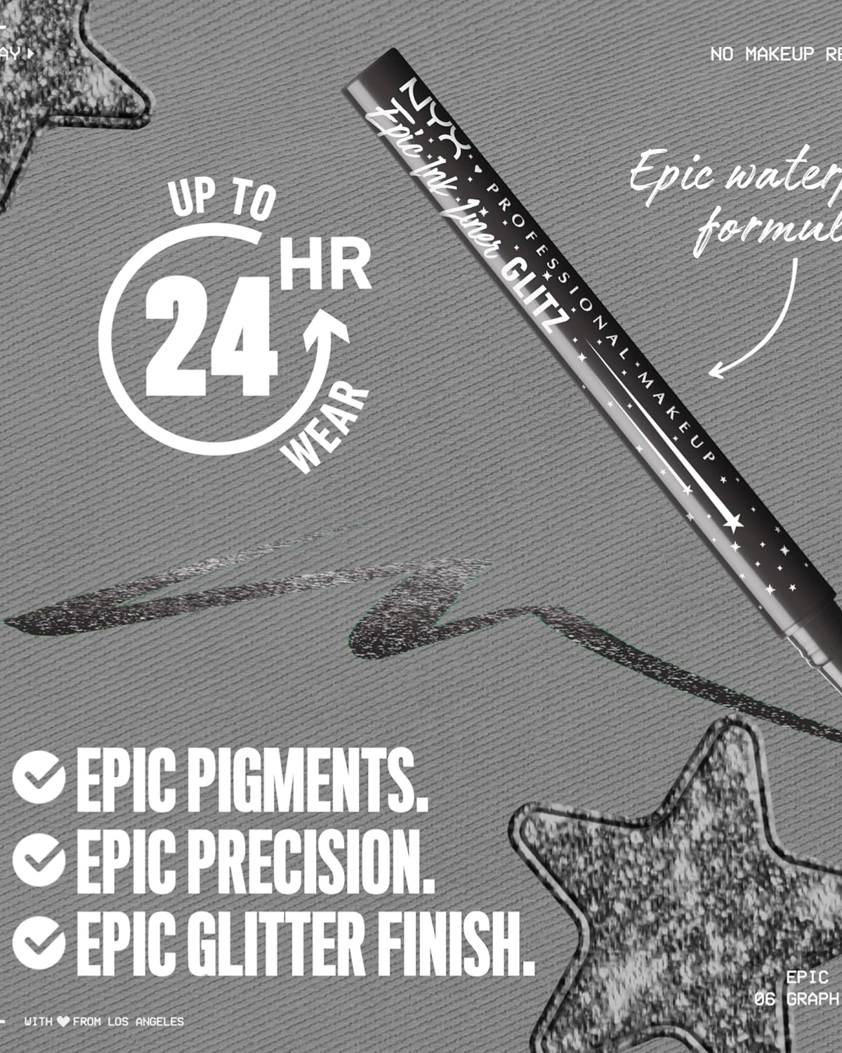 Waterproof Glitter Eyeliner: Our Epic family just got even more epic with this highly-reflective glitter eye liner for saturated lines that last. Now in 6 new glitzy shades - this epic glitz hits