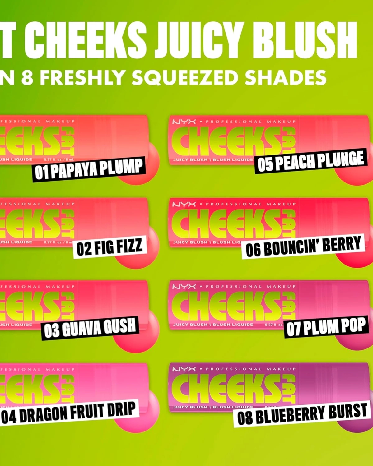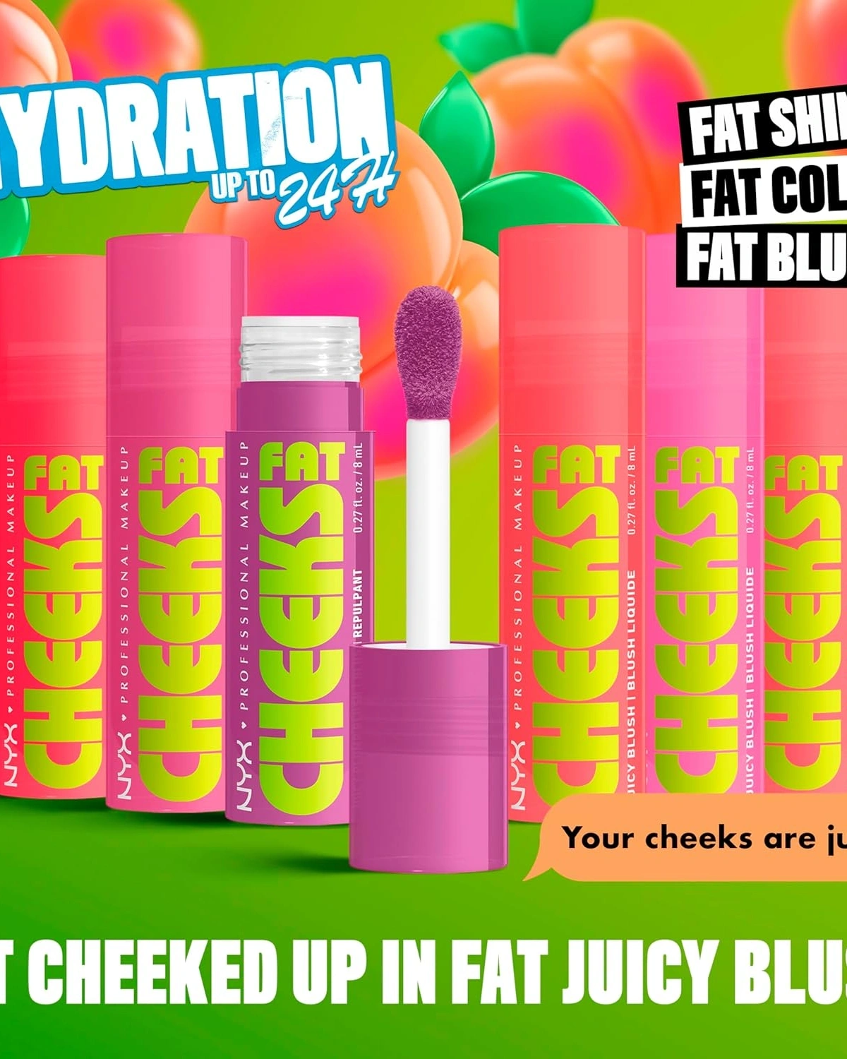 Dewy Liquid Blush For Cheeks: Get a FAT juicy makeup blush look in one swipe and take your cheeks from flat to FAT, with this buildable formula, blendable texture and juicy hydration. See up to 24HR hydration and up to 12HR wear in 8 shades