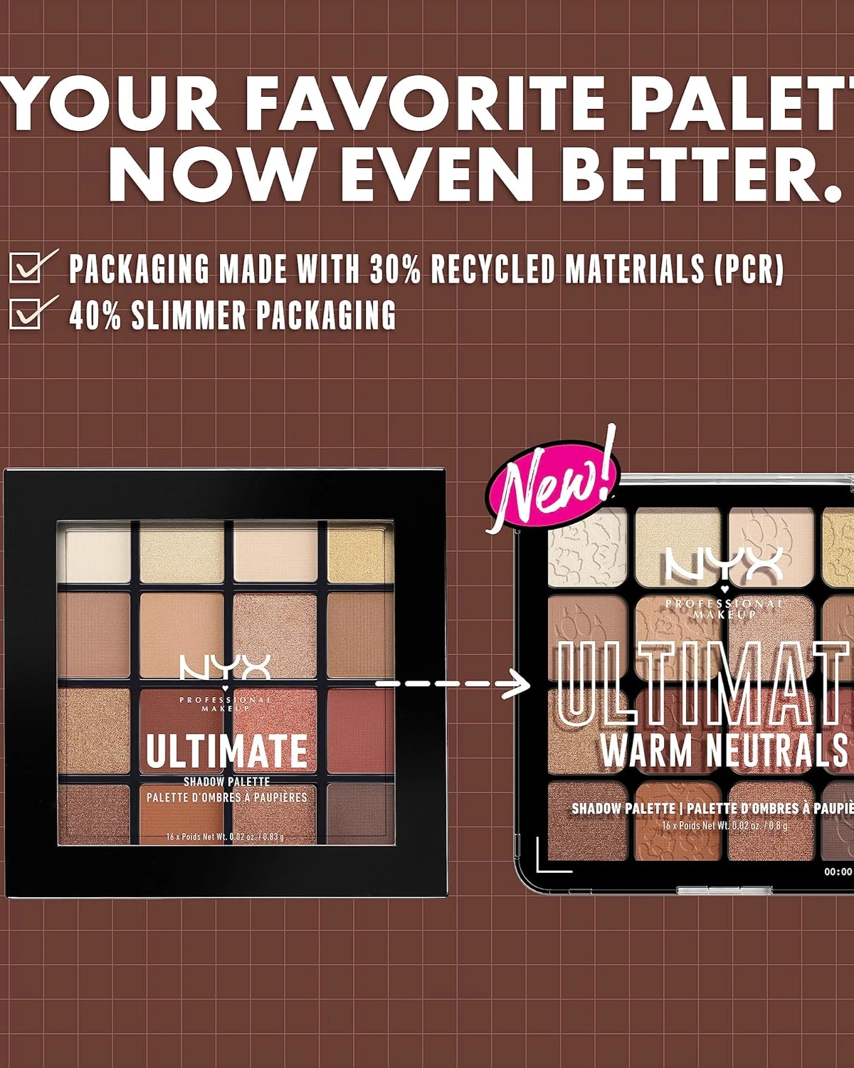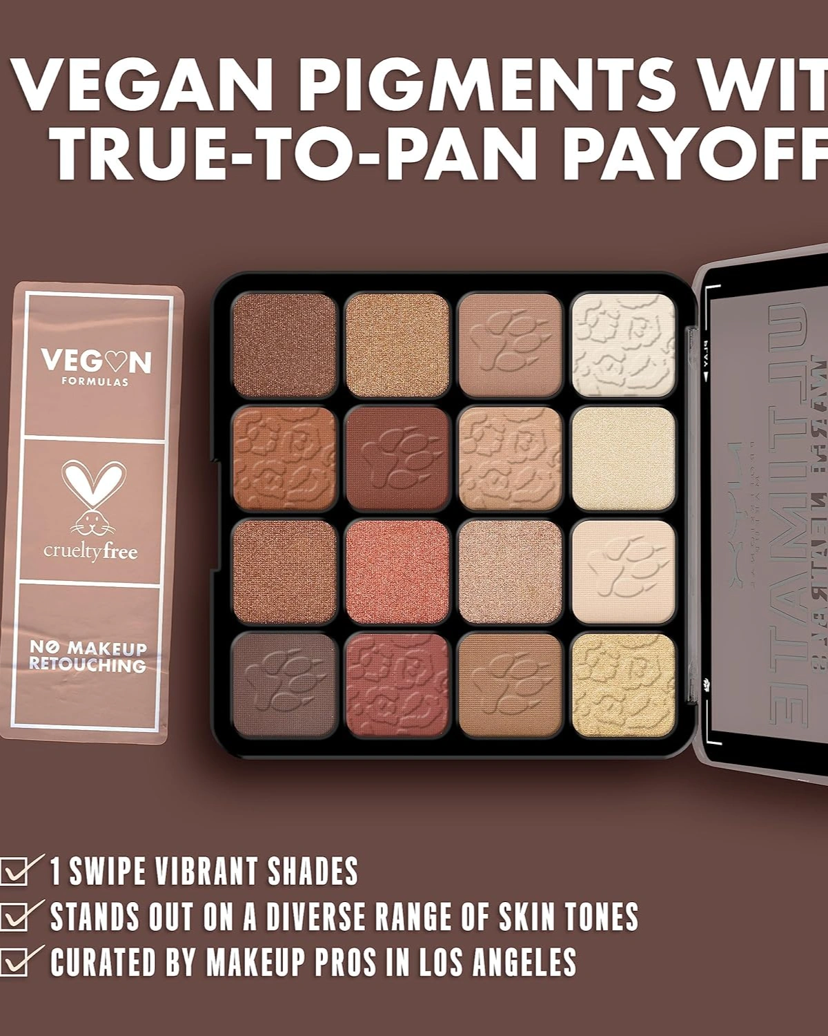 Eyeshadow Palette: This professional level makeup palette features 16 vegan, pigmented shadows that glide onto lids and make eyes pop with color; Use with NYX Professional Makeup eyeshadow primer for bolder, longer lasting color